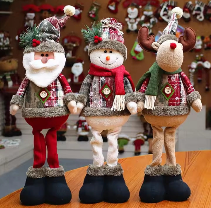 Decorate your home with these adorable Standing Christmas Plush Dolls, featuring Santa, Snowman, and Reindeer characters.
